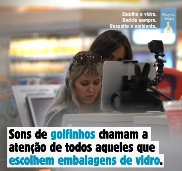 Várias pessoas em Lisboa foram surpreendidas quando foram às compras e optaram por embalagens de vidro. Cada vez que a caixa registava um produto embalado em vidro, era exibido um vídeo com o som de golfinhos a agradecer a escolha dos consumidores.